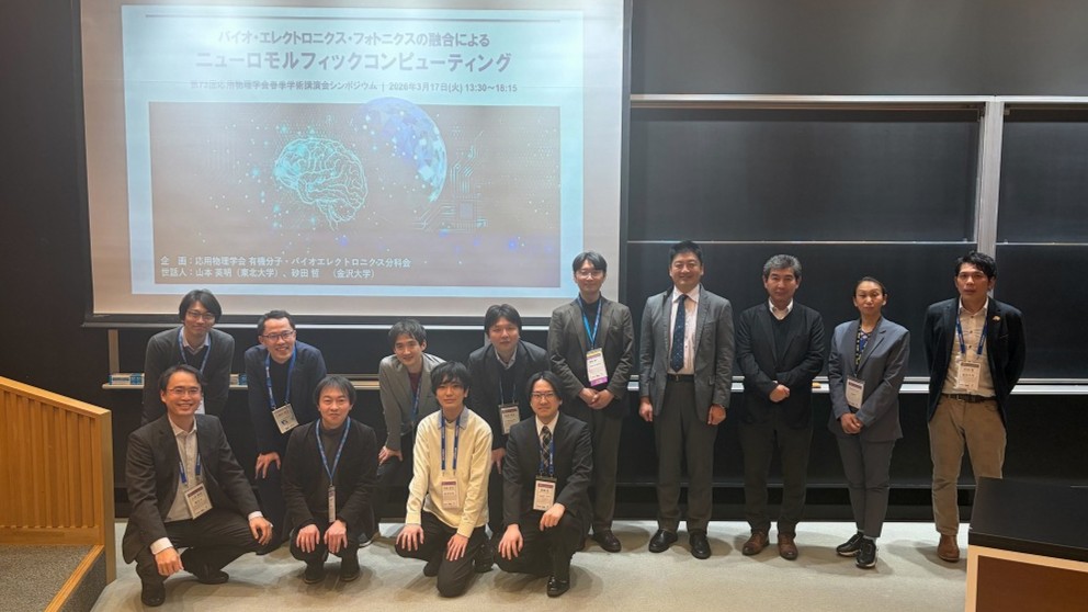 2026年3月17日に東京科学大学で開催された第73回応用物理学会春季学術講演会において、シンポジウム「バイオ・エレクトロニクス・フォトニクスの融合によるニューロモルフィックコンピューティング(Neuromorphic computing at the convergence of biology, electronics, and photonics)」(オーガナイザー:山本、砂田)を開催しました。